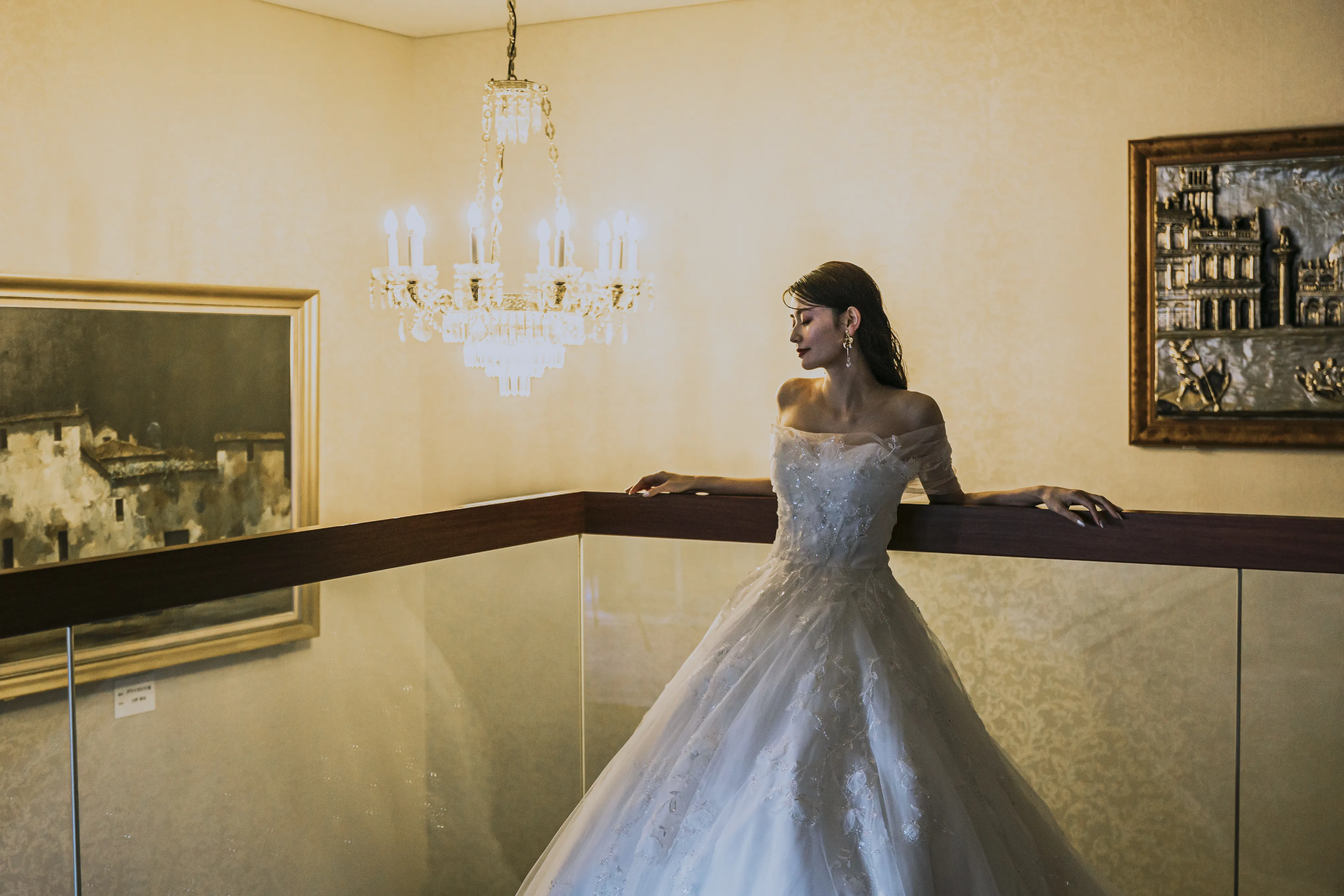 祭壇にたたずむ花嫁を美しく照らす独立型チャペル。